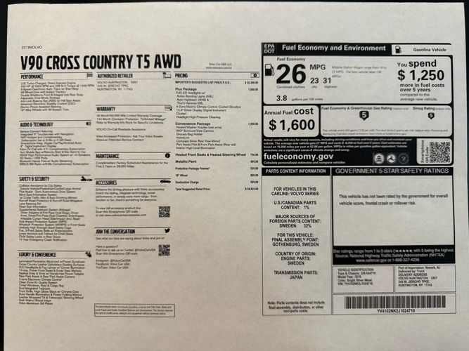 Buy from the Volvo Specialists! This RARE, An absolutely BEAUTIFUL 2018 ALL WHEEL DRIVE Volvo T5 V90 CROSS COUNTRY Come drive one of the safest vehicles on the road today. This Volvo LOADED with option like Heated Leather, Sun Roof, Navigation, and much more. Drive away worry free with our full safety inspection and 60 day 3000-mile warranty